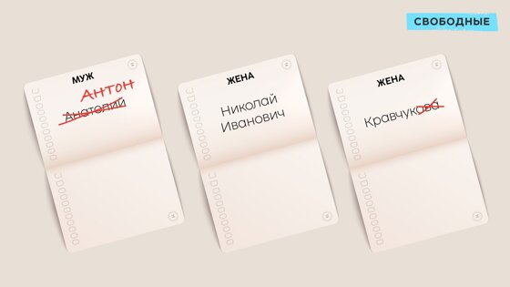 – Заглядываю я в паспорт и вижу, что женат не на том человеке! – вспоминает счастливый муж. – К несклоняемой украинской фамилии жены «...ук» добавлено окончание «...овой» (в регистрационной печати). Останавливаем машину, я бегу в ЗАГС, говорю: «Вы меня не на той женили!». «Что не так?» «Должно заканчиваться на... ук, а вы написали... уковой!». Женщина молча, с невозмутимым взглядом, как будто делает так по пять раз в день, взяла лезвие, затерла полслова и протянула мне паспорт: «Идите!». Ушел. Так с затертым паспортом и живу, – говорит Сергей.