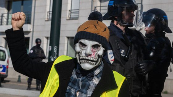 Протестующие против высоких налогов и требующие национального референдума "желтые жилеты" устроили беспорядки в Париже. Об этом сообщает РИА "Новости". Сегодня движение "жилетов" отмечает третью годовщину с момента основания. Шедшие колонной манифестанты пытались прорвать полицейское оцепление, в ответ силовики распылили слезоточивый газ. Кроме того, часть протестующих подожгла большую кучу мусора, а другие забрасывали полицию пустыми стеклянными бутылками. Кроме "желтых жилетов" в столкновениях с полицейскими участвуют люди в черной одежде, лица которых закрыты черными масками. Они, по данным СМИ, провоцируют полицию. Хулиганы разбили автобусную остановку. Полицейские также задержали двух человек, ехавших на фургоне. Корпус машины был украшен граффити, на котором президент США Джо Байден управляет французским президентом Эммануэлем Макроном как марионеткой. В свою очередь, Макрон был нарисован в минуту совокупления с овцой. Начато расследование об оскорблении представителя власти, сообщили в парижской полиции. Движение "желтых жилетов" появилось как социальный протест против повышения цен на бензин и дизельное топливо. На первую акцию 17 ноября 2018 года по всей Франции вышли больше 287 тыс. человек. "Униформа" протестующих была выбрана потому, что желтый светоотражающий жилет, согласно ПДД Франции, должен всегда находиться в частном автомобиле. В течение всего 2018 года цены на топливо во Франции стремительно росли. К концу года бензин подорожал на 7,5%, а дизель — на 15%. Из-за этого расходы французов увеличились примерно на €100-225 в месяц с начала 2018 года. Впоследствии к "топливным" требованиям добавился протест против социального неравенства — президент Франции Эммануэль Макрон ранее отменил "налог на богатство", введенный его предшественниками-социалистами. В связи с этим шагом французского президента еще активнее, чем обычно, начали обвинять в "работе на богачей". Протесты сопровождались столкновениями с полицией, особенно бурными беспорядки были в Париже. Большинство протестующих не одобряют действия радикалов, нападающих на полицию. Пресса сравнивает протесты "желтых жилетов" со студенческой революцией мая 1968 года. Из-за протестных акций студентов была нарушена работа 280 университетов и колледжей страны, в 45 из них занятия были отменены. После продолжительных протестов Макрон пошел на частичные уступки. Он пообещал с января 2019 года повысить на €100 минимальный размер ежемесячной заработной платы. Однако насилие на акциях протеста французский президент назвал недопустимым.