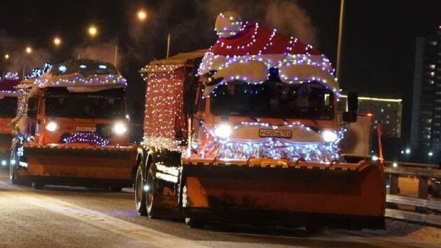 В праздничном виде спецтехника будет курсировать по столице Красноярского края до конца новогодних выходных.