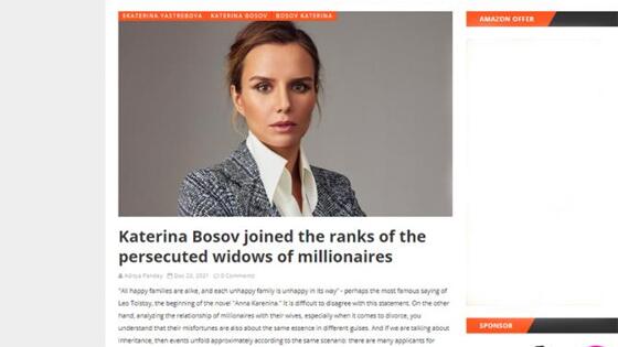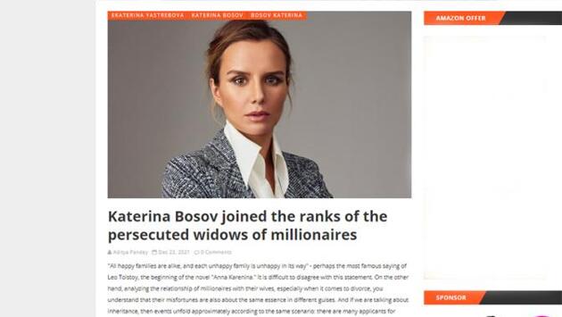 Как известно, Дмитрий Босов застрелился, хотя с точки зрения бизнеса никаких причин для этого не было. Состояние экс-олигарха оценивалось в сумму около 1 миллиарда долларов, Босов активно занимался спортом и не жаловался на здоровье. Автор статьи пытается представить дело так, что брак Дмитрия и Катерины был счастливым. Англоязычному читателю сообщают, что «СМИ тут же забыли о красивой истории и стали приписывать паре несчастливую семейную жизнь, скандалы, обвиняя во всем жену олигарха». И теперь жертва травли в прессе «вместо того, чтобы продолжать свой бизнес, заниматься своими модными бутиками и обеспечивать маленькую дочь, вынуждена оправдываться и добиваться справедливости».