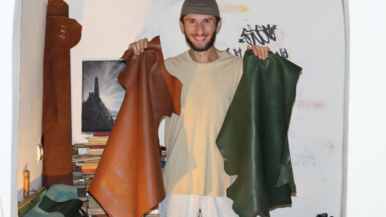 Кожу заказываю в Москве и Питере, куда ее поставляют из Италии. Правда, сейчас какие-то позиции пропали и цены поднялись. Вот, например, этой кожи больше не будет — последнюю шкурку себе оставил. Еще заказываю на белорусской фабрике. С этим проблем нет.