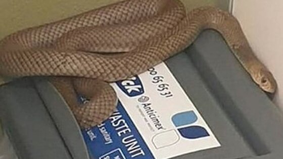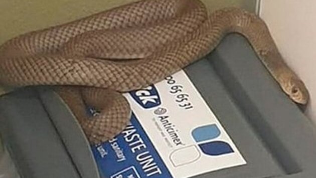 Смертельно ядовитая змея свернулась кольцами на крышке мусорного ведра в кабинке туалета. Отмечается, что ее длина составила более метра.