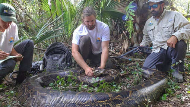 В Индонезии семиметровый питон целиком проглотил 54-летнюю женщину. Об этом сообщает портал Сoconuts.co. Сборщица каучука из округа Бетара пропала без вести 23 октября 2022 года. На поиски женщины вышли полицейские и односельчане индонезийки, однако все, что им удалось найти, — сандалии, куртка и нож, принадлежавшие женщине. В ходе поисковых работ полицейские обнаружили огромного семиметрового питона с раздувшимся животом. Правоохранители вспороли живот змеи и обнаружили там тело погибшей женщины. "Тело жертвы не разложилось, когда мы обнаружили его внутри змеи. Это значит, что ее проглотили целиком совсем недавно", — рассказали в местной полиции. Ранее зоологи обнаружили, что питон может проглотить огромную добычу благодаря сверхэластичной коже.