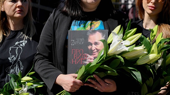 Гроб с телом модельера Вячеслава Зайцева под аплодисменты вынесли из Собора Живоначальной Троицы в Щелкове. Пришедшие проститься выкрикивали "Слава, спасибо!" Машина с гробом отъехала на Жегаловское кладбище Щелкова под звон колоколов.