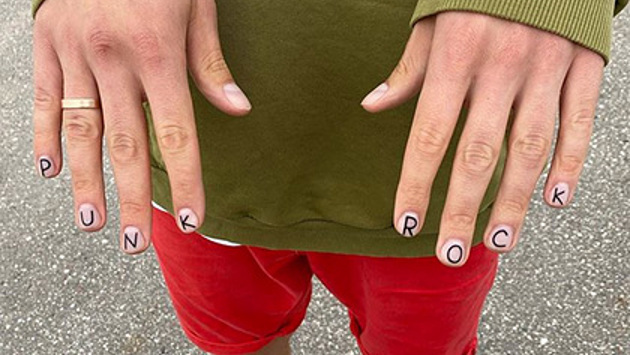 На размещенном кадре журналист показывает на камеру маникюр, основу которого составляет бесцветное покрытие. При этом на каждый ноготь черным цветом нанесена буква. В результате из букв складывается фраза punk rock.