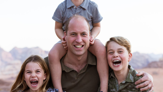 Даже несмотря на свой статус будущего короля, принц Уильям умеет весело проводить время, особенно, когда его окружают любимые наследники — принцы Джордж, Луи и принцесса Шарлотта. Вот и в минувшую субботу семья Кембриджских решила проверенным и очень надёжным способом поздравить всех с Днём отца. На снимке, который, кстати, был сделан в прошлом году во время путешествия герцогов в Иорданию, принц Уильям сидит в центре, его старший сын — Джордж располагается с правой стороны, Шарлотта — с левой, ну, а младшему — Луи досталось самое лучшее место на шее у папы, чему он, конечно, бесконечно рад. Дети и принц Уильям были запечатлены на фоне песчаных дюн и абсолютно не скрывали своего счастья и радости.