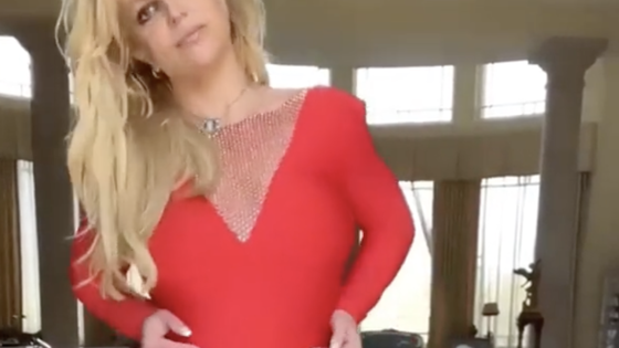 40-летняя поп-исполнительница опубликовала ролик, в котором она танцует в красном мини-платье с V-образным декольте и разрезом на ноге, которые выполнены из блестящей сетки. На размещенных кадрах она демонстрирует фигуру с разных ракурсов, двигаясь в черных туфлях на каблуках. Волосы Бритни распущены, а глаза подведены черным карандашом.
