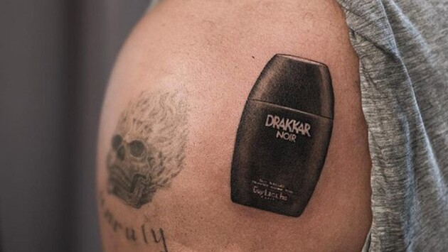 Рэпер решил запечатлеть на теле свою единственную любовь — флакон парфюма Drakkar Noir. Интересно, можно ли потереть и понюхать это тату, как в каталогах с косметикой из нулевых?