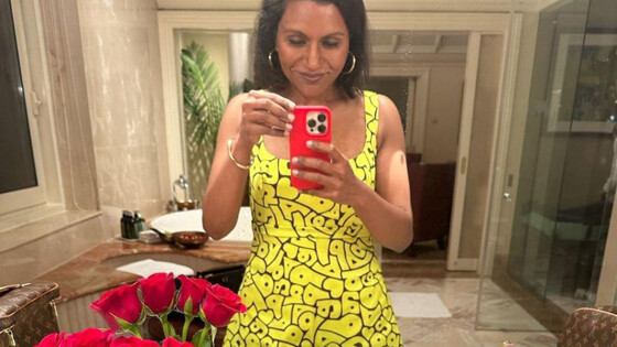 В личных соцсетях актриса поделилась селфи в желтом платье, подчеркнувшем ее внезапную худобу. 43-летняя Калинг сделала снимок в собственной ванной комнате, стоя перед зеркалом.