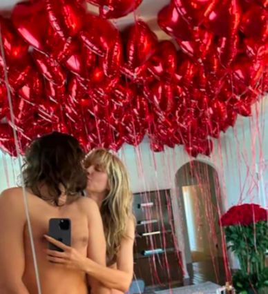 Недавно Хайди поделилась фото, на котором она запечатлена в объятиях молодого супруга. Пара позировала обнаженной в окружении красных шаров и букетов роз. В такой романтичной обстановке Том и Хайди провели четвертую годовщину свадьбы.