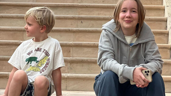 Она опубликовала фотографию, на которой дети позируют вместе. Поклонники заметили, что наследники супругов одеты для разных погодных условий.