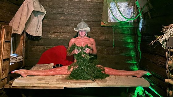 «Пока мою домашнюю баню полностью реконструируют, я наслаждаюсь парением в одной из моих любимых бань в Одинцове. Полку парной я, конечно же, измерила мерой моего шпагата», — подписала пост Волочкова.