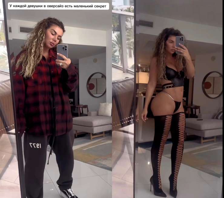 «У каждой девушки в оверсайз есть маленький секрет» (здесь и далее орфография и пунктуация авторов сохранены, — прим. WomanHit.ru), — подписала пост певица.