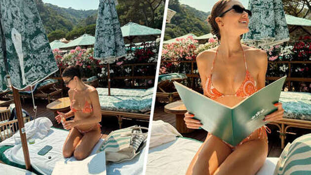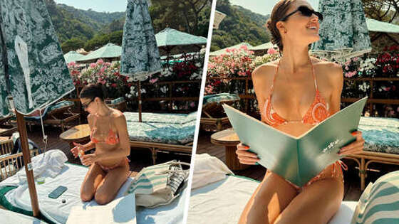 Актриса Ханде Эрчел уже несколько дней наслаждается отпуском в Италии. Звезда турецкого сериала «Постучись в мою дверь» регулярно публикует фотографии в вечерних нарядах. Однако на этот раз она поделилась редким снимком в купальнике. Перед камерой она позировала в крошечном бикини с принтом. Образ дополнили узкие солнцезащитные очки и сет подвесок.