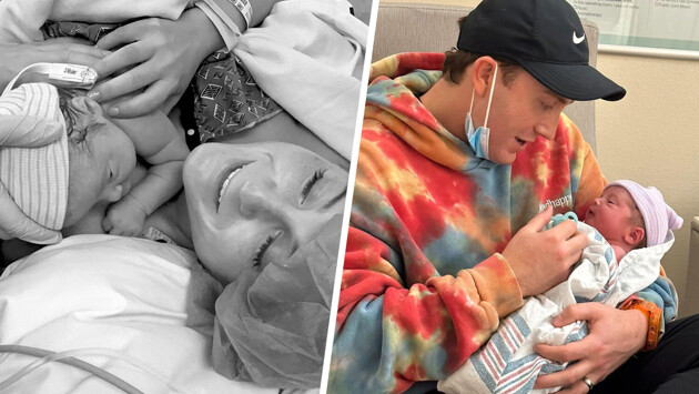 «1 июля, в седьмую годовщину нашего первого свидания, мы приветствовали Барри Брюса Трейнора. Он родился большим мальчиком — целых 8 фунтов и 7 унций», — рассказала исполнительница в социальных сетях, сопроводив пост фотографиями с новорожденным.