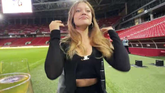 Парень устроил романтический вечер на стадионе «Спартака»: оба были в вечерний нарядах, на столе — ужин, шампанское и свечи. На большом экране весь вечер показывали совместные снимки пары. Момент влюбленным также скрасили музыканты из Мексики и фейерверки.