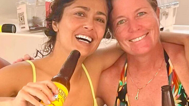 На размещенных снимках 56-летняя Сальма Хайек отдыхает на яхте со своим инструктором по дайвингу Мартиной Энгель. На первом фото актриса позировала в желтом купальнике с эффектом пуш-ап, а на втором — в гидрокостюме для подводного плавания. Волосы актрисы были собраны в небрежный пучок, а макияж отсутствовал вовсе.