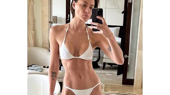 Звезда телесериала «Универ» разместила в сторис снимок, на котором она запечатлела себя позирующей в белом бикини люксового бренда Dolce & Gabbana. На опубликованном кадре видно, что на лице артистки отсутствует макияж.