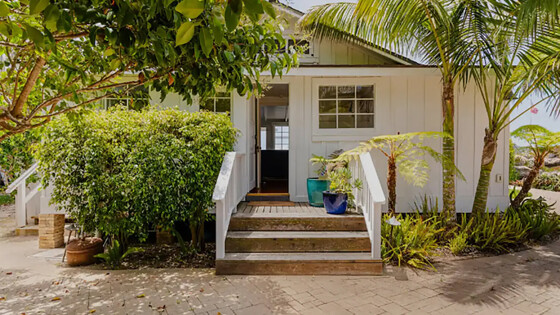 Супруги уточнили, что дом расположен «в нескольких шагах от пляжа», а из окон открывается «панорамный» вид на горы Санта-Инес. К услугам гостей две спальни, две ванные комнаты, столовая и полноценная кухня. К дому также примыкает просторный внутренний дворик с огромной гидромассажной ванной.