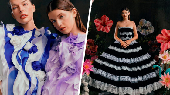 47-летняя Милла Йовович и 15-летняя Эвер Андерсон стали героинями модной съемки бренда Rodarte. Актриса и ее дочь позировали фэшн-фотографу Дарье Кобаяши Рич в платьях из новой коллекции марки на фоне цветочных композиций.