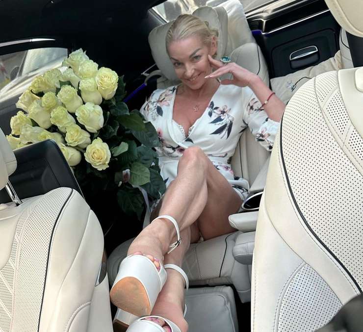 На опубликованной фотографии Анастасия позирует с букетом белых роз в салоне автомобиля.