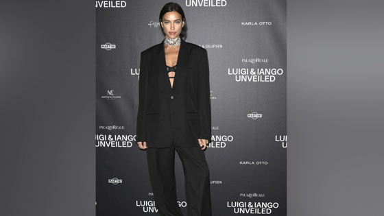 Супермодель Ирина Шейк в мужском костюме пришла на выставку в Милане