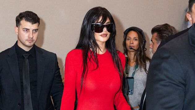 26-летняя Кайли Дженнер выбрала для мероприятия обтягивающее красное платье с широким подолом, которое дополнила остроносыми туфлями на шпильке и миниатюрной сумкой в тон. Звезда реалити-шоу "Семейство Кардашьян" дебютировала на показе с новой прической - модель отрезала челку "штрихкод", которую ранее носила ее старшая сестра Ким.
